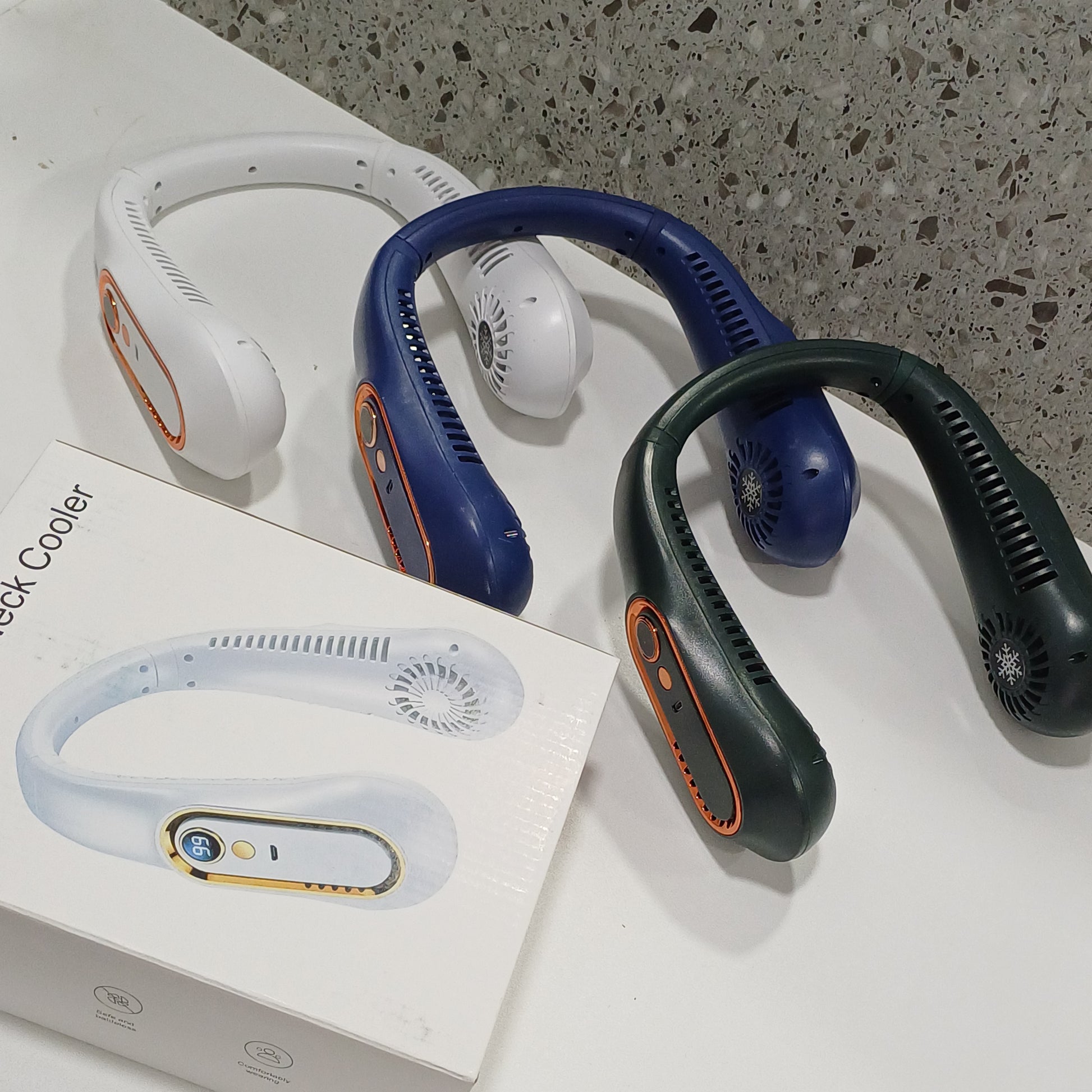 Ventilador colgante para cuello sin hojas, asegura un aire uniforme y una experiencia sin peligro de enredos.